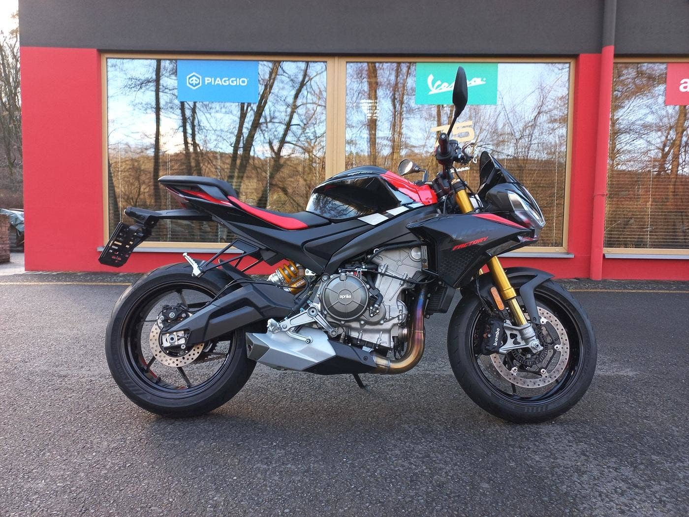Tuono 660 Factory je inspirováno legendárním modelem Tuono V4 1100 a doplněno inovacemi z modelu RS 660. Ztělesňuje podstatu závodního ducha značky Aprilia v podobě agilního, odvážného a výkonného motocyklu. Dvouválcový motor o výkonu 105 k splňující normu Euro 5+ vytváří v kombinaci s výjimečně lehkou konstrukcí nejlepší poměr výkonu a hmotnosti ve své třídě - a zaručuje jeden z nejúžasnějších zážitků z jízdy, jaký můžeš na silnici zažít. Působivý výkon je doplněn absolutní kontrolou - díky plně nastavitelnému odpružení Öhlins, brzdám Brembo a pokročilému elektronickému balíčku a-PRC.